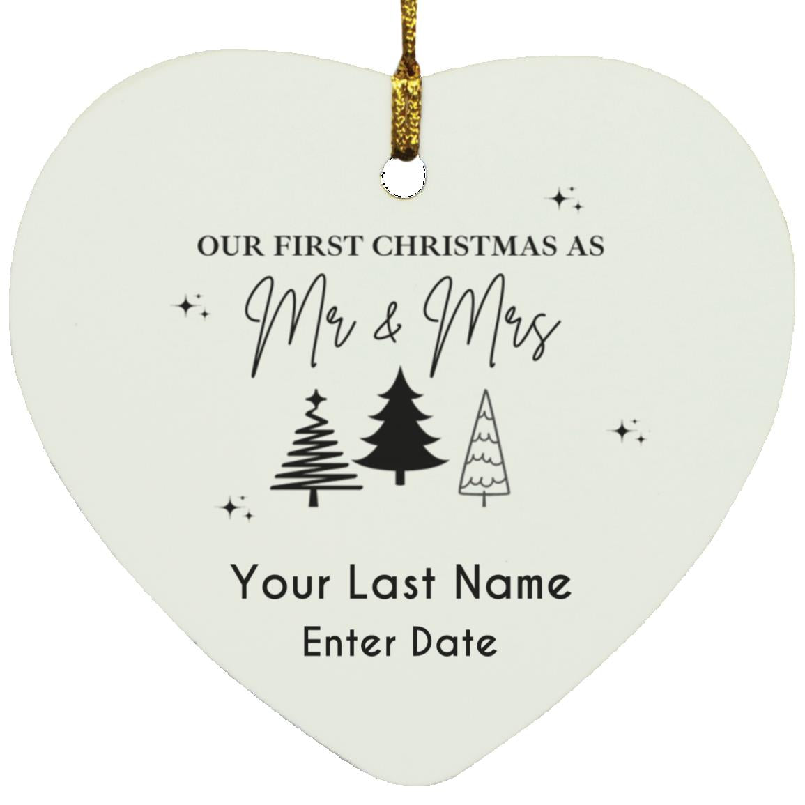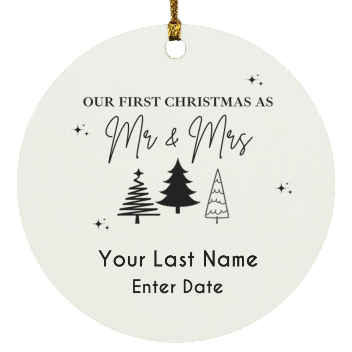 First Year as Mr & Mrs Personalized Ornament | Available in Circle & Heart Shapes
